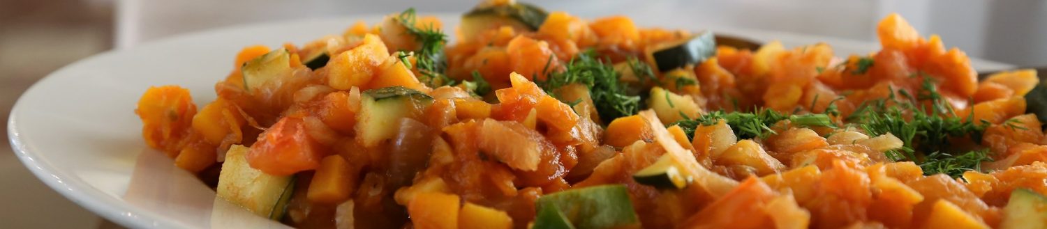 2 abobrinhas italianas 2 cenouras 4 colheres (sopa) de azeite 2 dentes de alho amassados Sal a gosto Tomate-cereja e folhas de manjericão para decorar